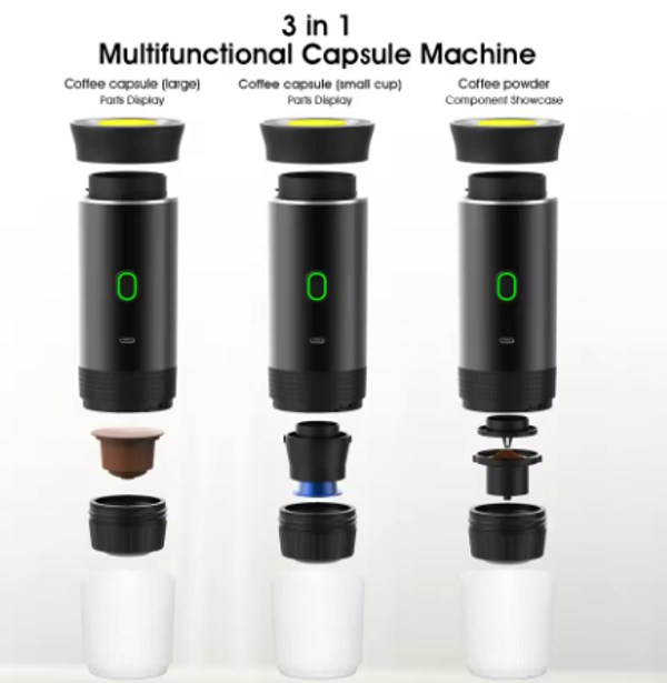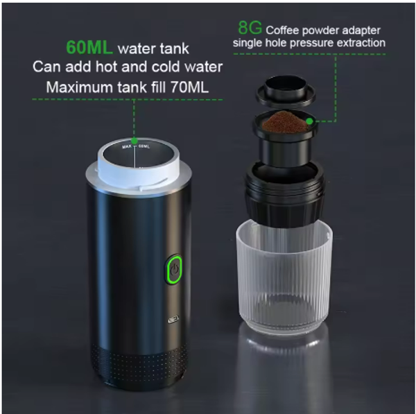 Machine à café expresso électrique portable sans fil, cafetière de camping, 3 en 1, capsule, poudre, voyage, voiture, maison