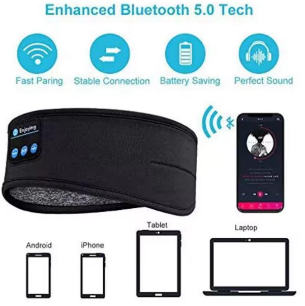 Écouteurs sans fil Bluetooth Fone, casque élastique, masque pour les yeux de musique, bande de sauna de sommeil de sport